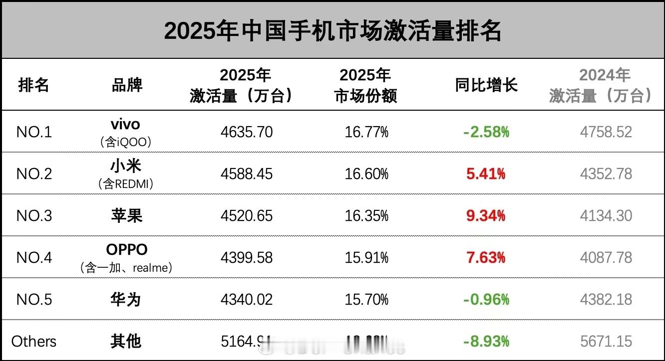 25年小米手机的成绩还不错,对标苹果的策略反映到销量上是成功的,份额力压苹果升到第二。而且小米去年的超高端产品线是在持续突破的,每款产品的市场反馈都不错,而且讨论度非常广。有内置低音炮的K90 Pro Max,有创新背屏的小米17 Pro系列,有连续光变的小米17 Ultra,口碑都很好,也体现了产品能力的进步。26年接下来还会有很多有意思的产品,我觉得是值得期待的