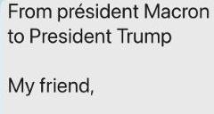 特朗普不仗义,不给马克龙面子,直接把信晒到网上。 老特直接将法国总统马克龙的私信公开,马克龙在信中表示:“我的朋友,我们在叙利亚问题上保持完全一致,我们可以在伊朗问题上大有作为,但我不理解你在格陵兰岛问题上的做法。”马克龙还提议安排七国集团(G7)于2026年1月22日在巴黎召开会议,并可邀请乌克兰、丹麦、叙利亚和俄罗斯等方参与。 老特因不满其像岳不群,是个伪君子,直接曝光私信,老特的这种做法是不是有点像柬埔寨泰国那事,引发舆论哗然。