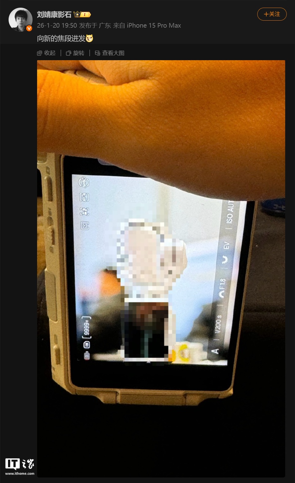 不过刘靖康并没有明说这台产品到底是什么,只是配文:“向新的焦段进发[狗头斜眼]”。