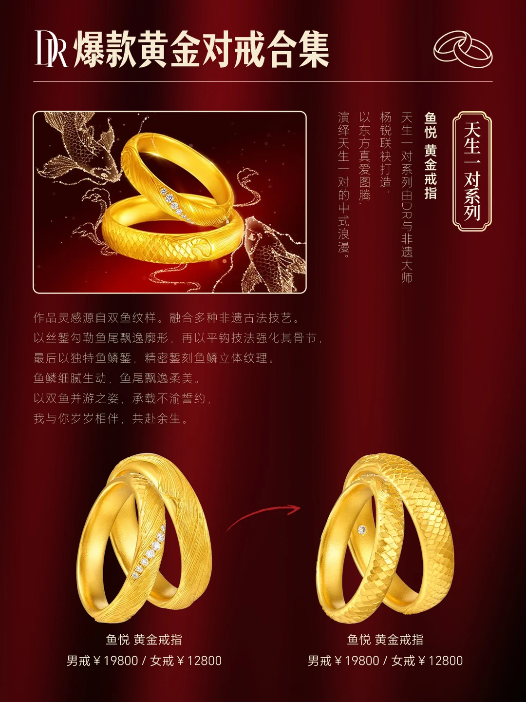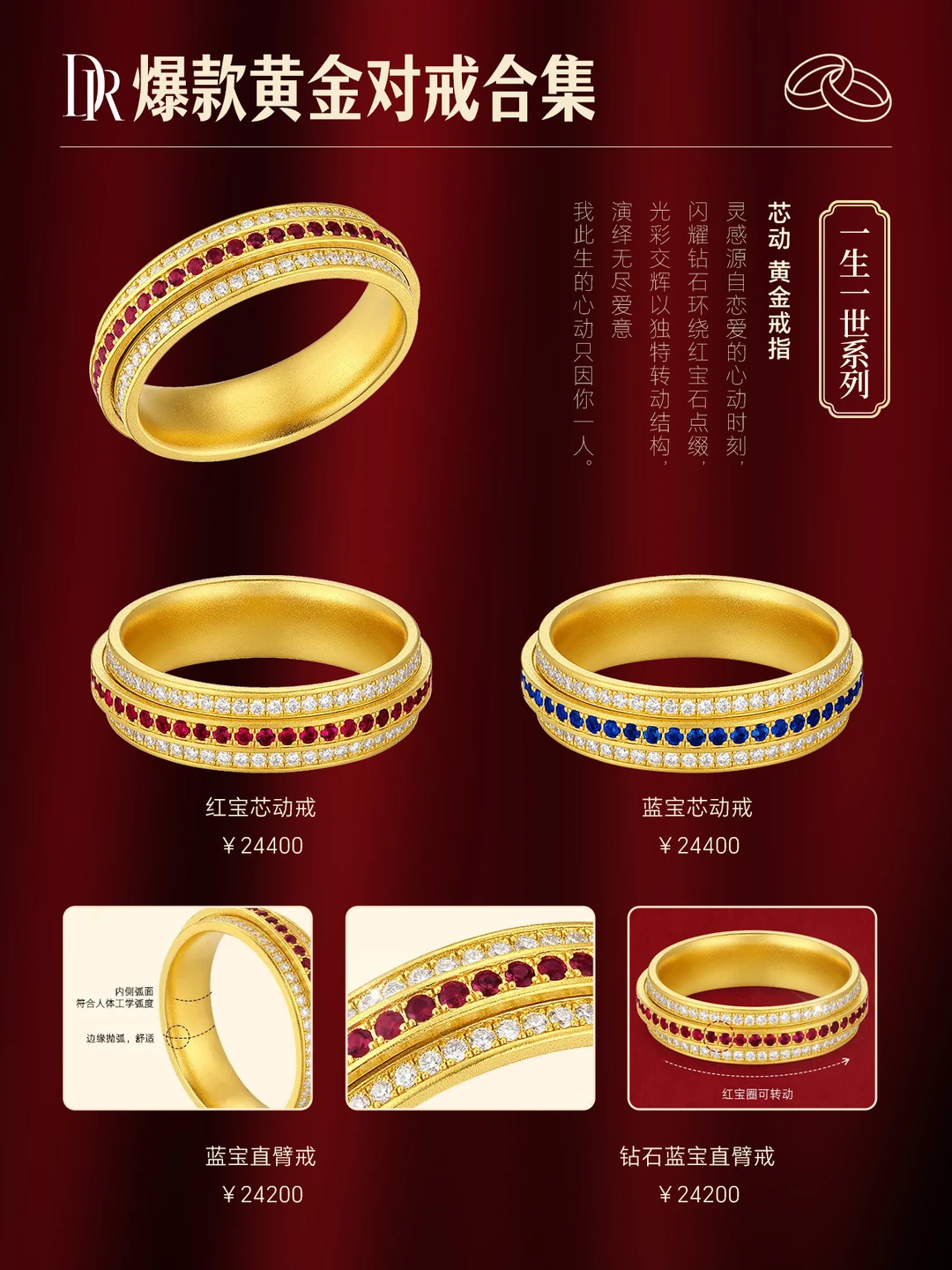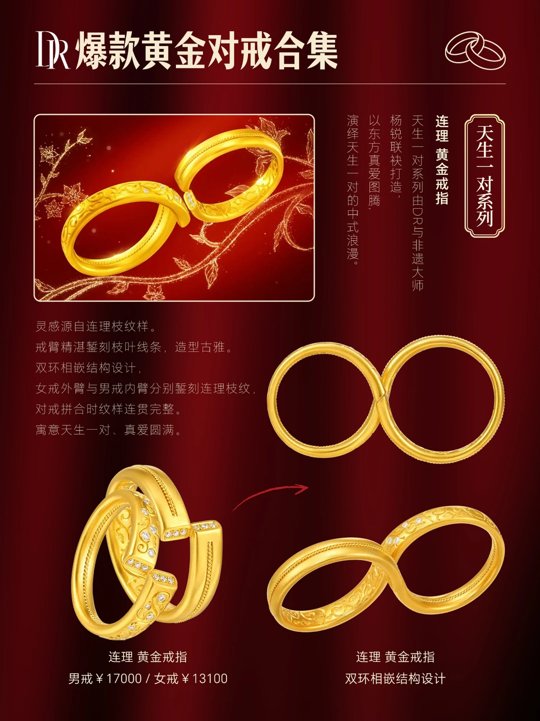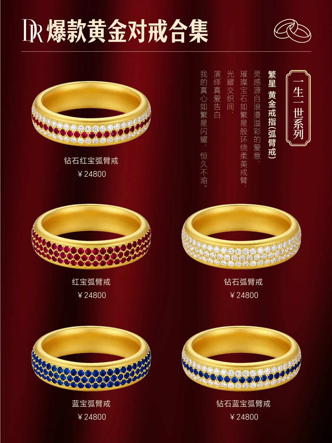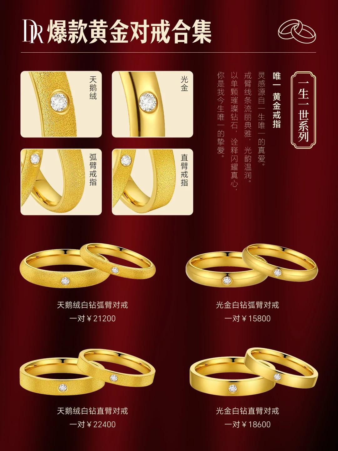 提到赋予珠宝深刻情感意义的品牌,DR一定是很多姐妹会想到的名字。那句“一生只送一人”的承诺,可以说把仪式感和唯一性拉满了。今天带你们看看DR那些寓意超好、设计也超有巧思的黄金对戒系列,或许能给你带来满满惊喜哦~✨