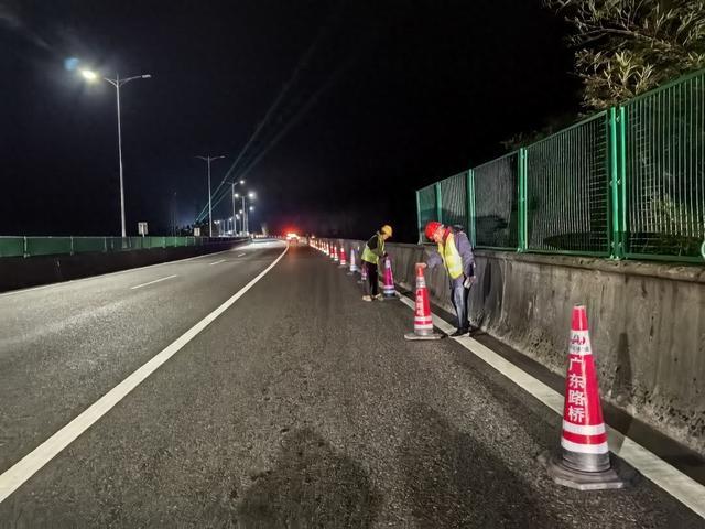 当天21时,为保障道路通行安全,二广高速会同高速交警在双向云雾特大桥至九嶷山隧道共计10公里,利用交通锥压缩超车道和应急车道,现场主车道可通行。
