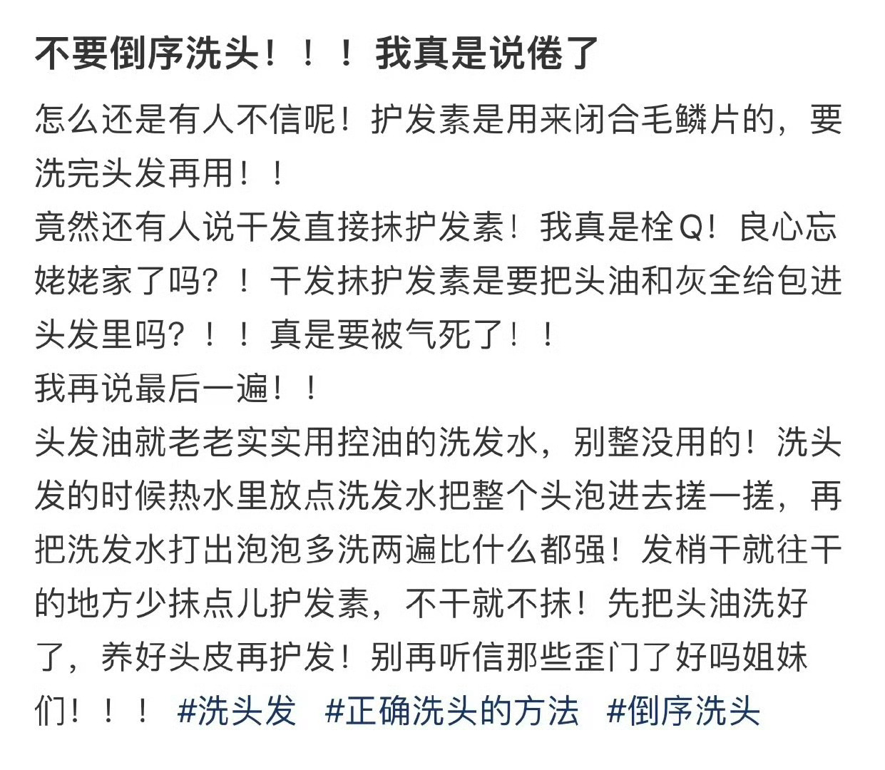 不要倒序洗头!我真的说倦了!