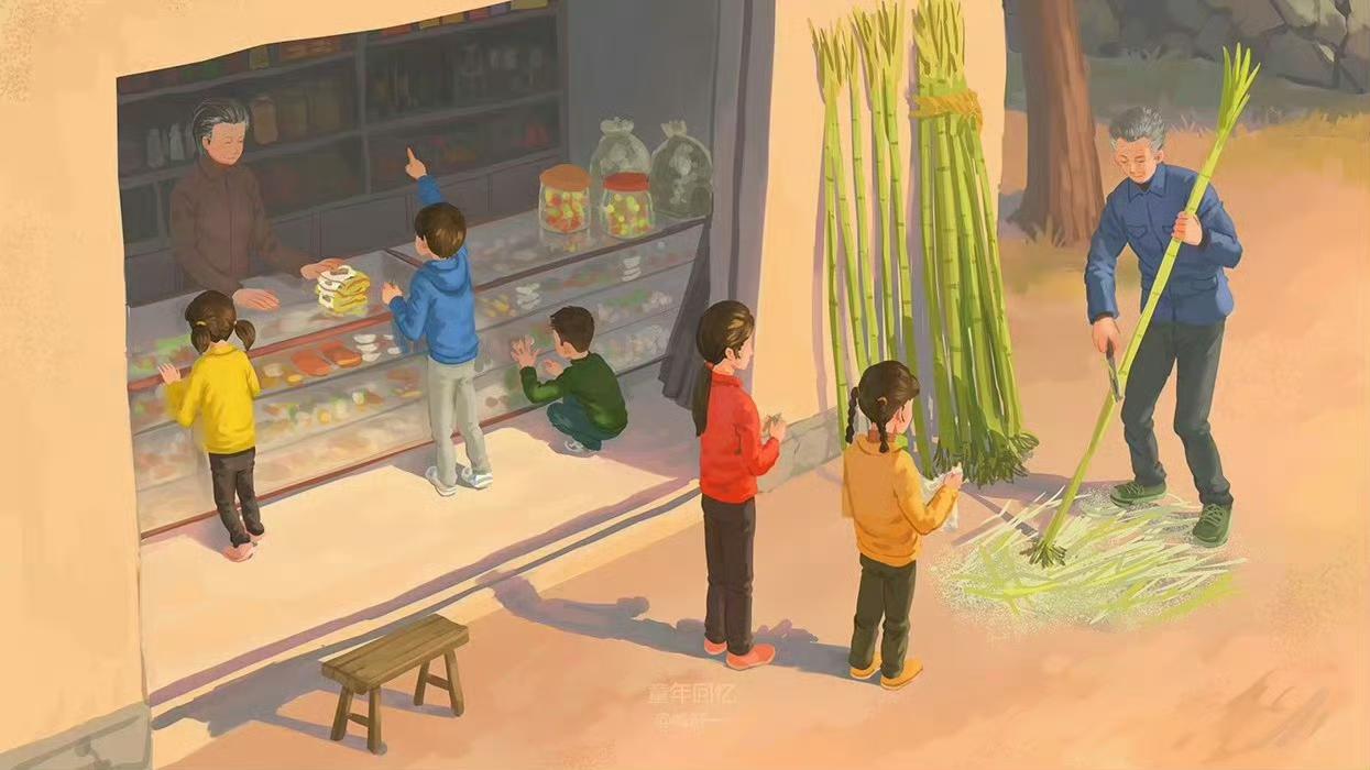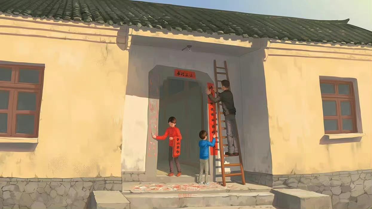 “《童年回忆·过年》... ”丨插画师: 峰籽一 绘画