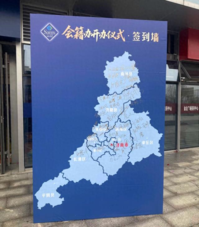 近日,济南山姆会员商店传出将于今年上半年正式开业的新消息,位于花园东路的临时会籍办理处也正式启用。然而,不少前往临时会籍办理处的市民发现,门口签到墙上的济南市地图居然用错了,这让不少市民网友直呼“穿越了”。