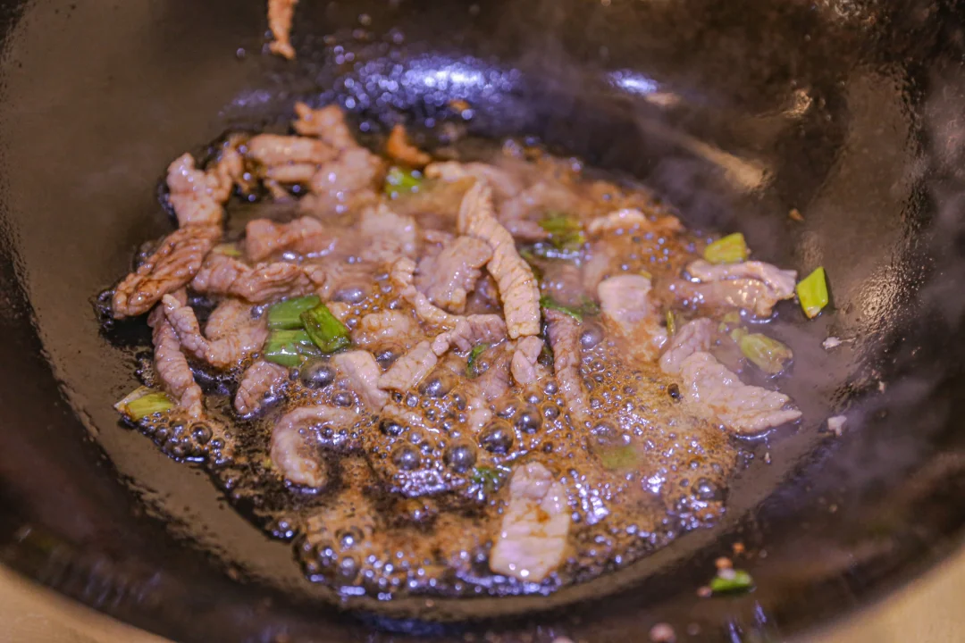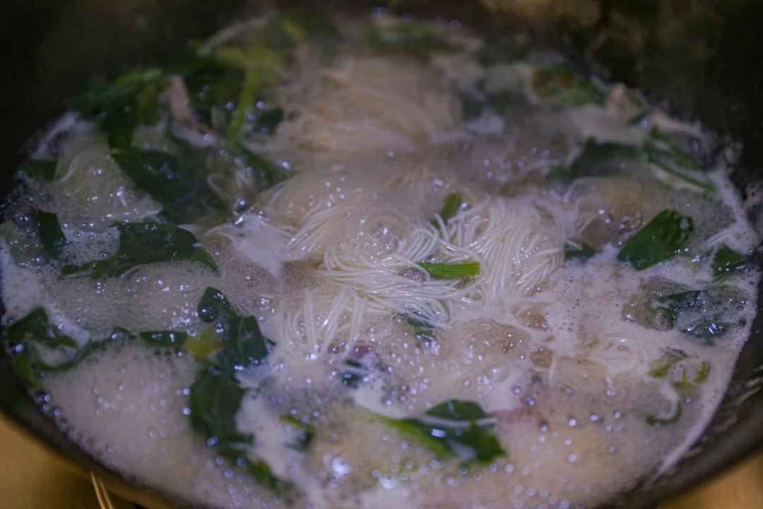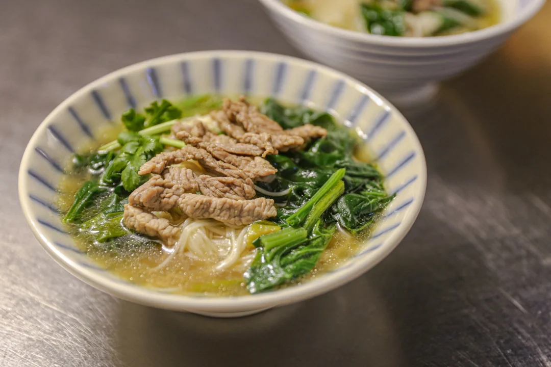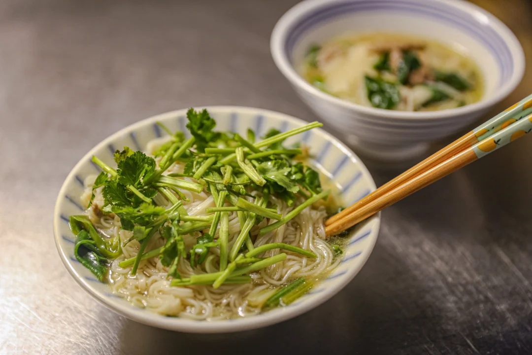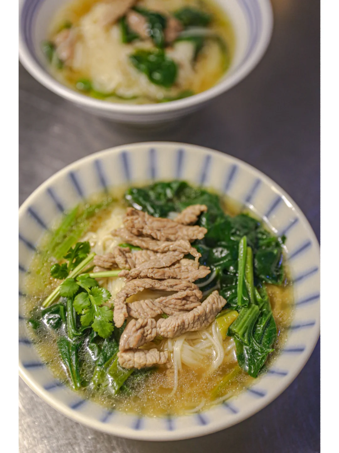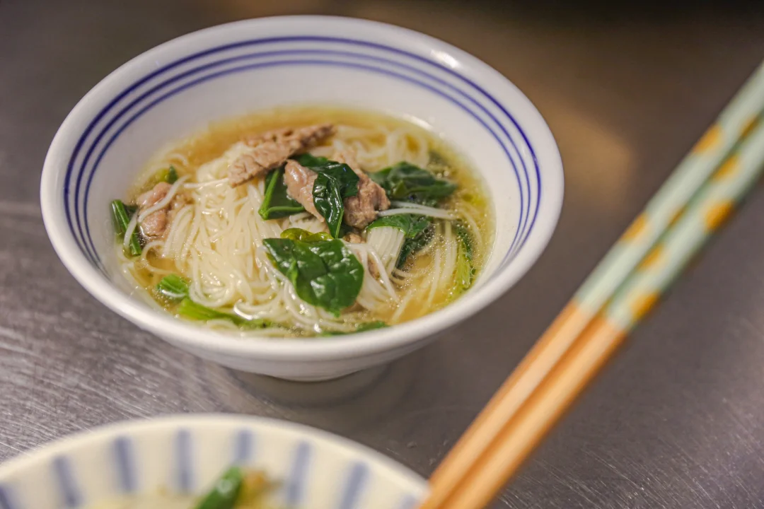热气腾腾的三餐 肉丝汤面 这一碗面,在任何城市的大街小巷都随处可见,也是百姓家的餐桌上最喜以平常的家常汤面条。 热锅凉油,放入蒜片和葱丝炒香,加入肉丝,放入花雕酒去腥,放入酱油,加入开水,滚开之后加入食盐和白胡椒粉和鸡粉调味,放入面条,临出锅加入青菜。 超级喜欢吃香菜的我,最后少不了。
