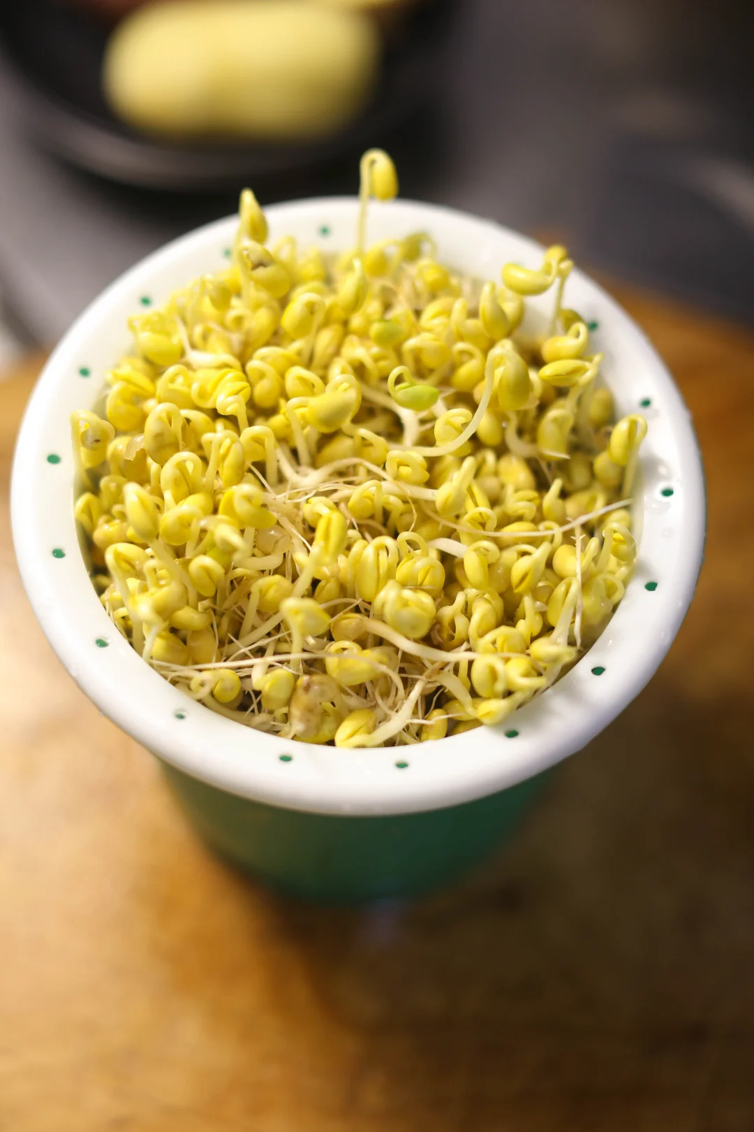 什么豆子都可以,绿豆、黄豆、黑豆。确保是当年新豆,发芽率更高。不要使用陈年旧豆或煮食用的豆子。