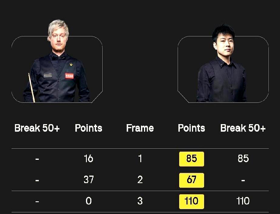 0胜3负,今晚再输就回家 罗伯逊在冠军联赛第五组连吞三场败仗,净胜局负六,排小组倒数第一。昨晚对莱恩斯,他一度追到2比2,决胜局粉球失误,直接让对手捡走胜利。今天必须连赢吴宜泽、肖国栋、塞尔比,才有理论上的活路,错一局就订机票。 短局制最吃手感,他长台成功率跌到36%,比上赛季掉8个点。简单球也总晃袋,一失误就送对手连续得分,三场比赛没一次单杆过百,唯一亮点是第二场的130分,可那局还是输了。 去年他在世界大奖赛10比0横扫宾汉姆,沙特大师赛又绝杀奥沙利文,转眼半年就陷入这种死循环。球迷留言:墨尔本机器像忘了加油。其实问题就在细节,冠军联赛五局三胜,没空调整,一旦节奏断档,连败说来就来。 今晚第一场吴宜泽,年轻人准度吓人;第二场肖国栋,防守黏人;第三场塞尔比,磨王本王。罗伯逊得把长台拉回45%以上,还得把每颗简单球当赛点打,否则0比3提前收杆,连理论希望都省了。
