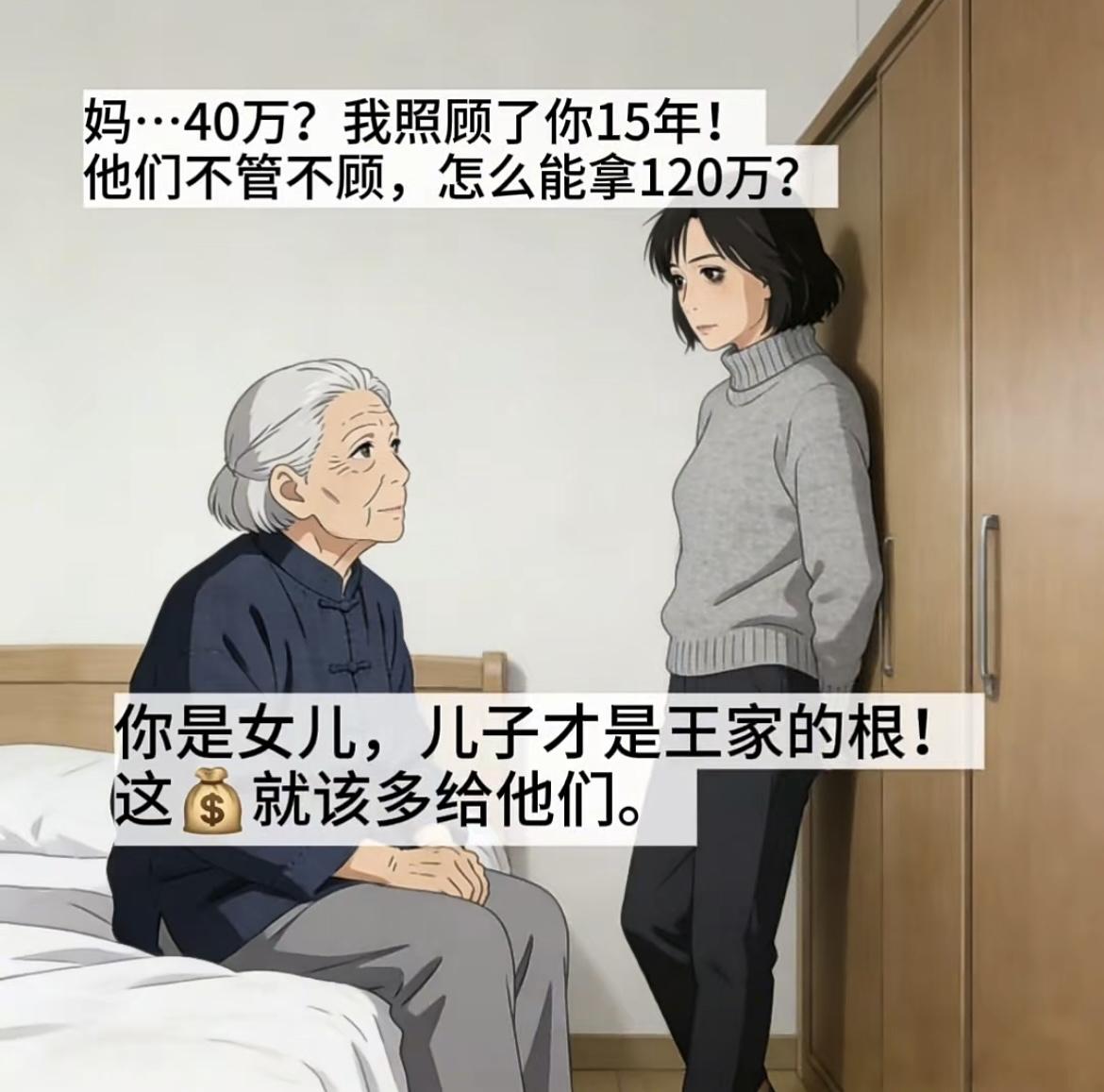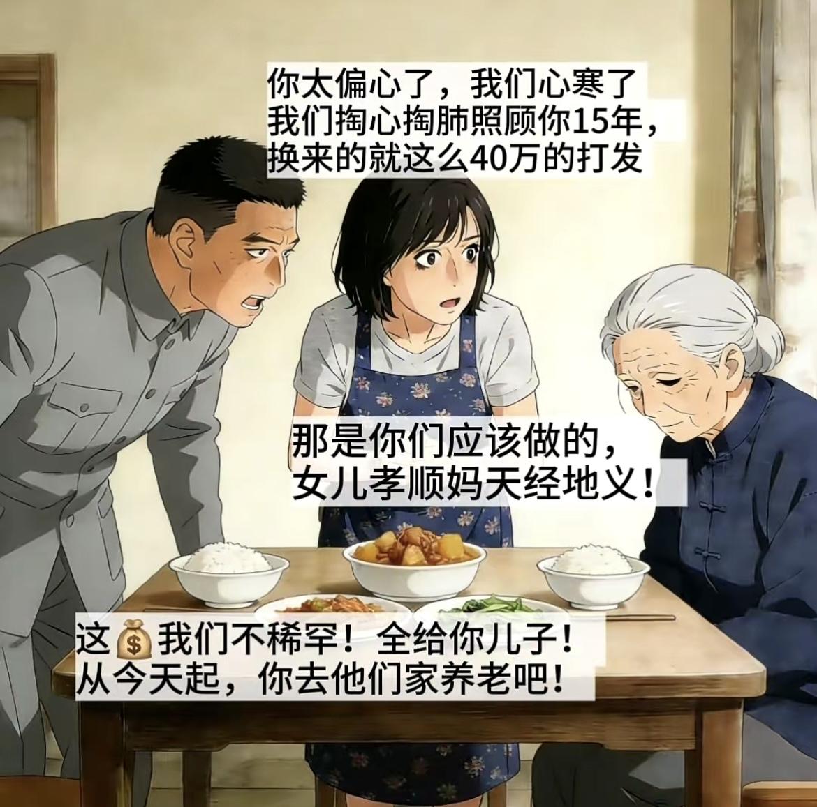 “ 女儿女婿照顾岳母15年,拆迁款300万,只拿了40万,两个儿子不管不顾 分120万,彻底让女儿女婿心寒……”[白眼][白眼]