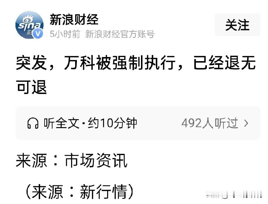 压倒骆驼的稻草落下来了,后面万科的日子会越来越难过 欠债还不了,必然就是法院的强制执行 有一家对此开头,后面就会继续跟进 毕竟,早一点出手,就能多挽回一些损失 现在就看万科还有什么良策来对应诸多的讨债方 很多时候,并不是墙倒众人推,而且大家都想少损失一些 毕竟 ,及时止损总比最后竹篮打水要好得多