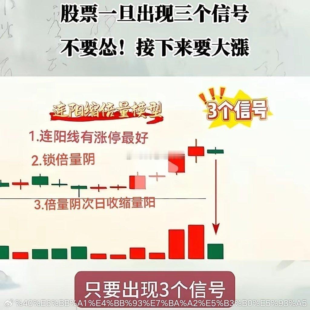 连阳缩倍量模型这是短线量价战法,核心是连阳建仓→缩倍量洗盘→倍量突破,抓主力拉升起点,常见于底部或上升中继。结构:1. 连阳建仓段:连续4-5根以上阳线,碎步上行、依托5日均线,最后1根为阶段最大量,确认主力进场。2. 缩倍量洗盘段:连阳后小幅调整横盘或微跌,量能缩至连阳最大量的一半以下,缩量越极致越好,代表浮筹洗净。3. 倍量突破段:洗盘后出现倍量阳线,收盘价站上调整平台上沿,反包调整K线实体,确认洗盘结束、拉升启动。