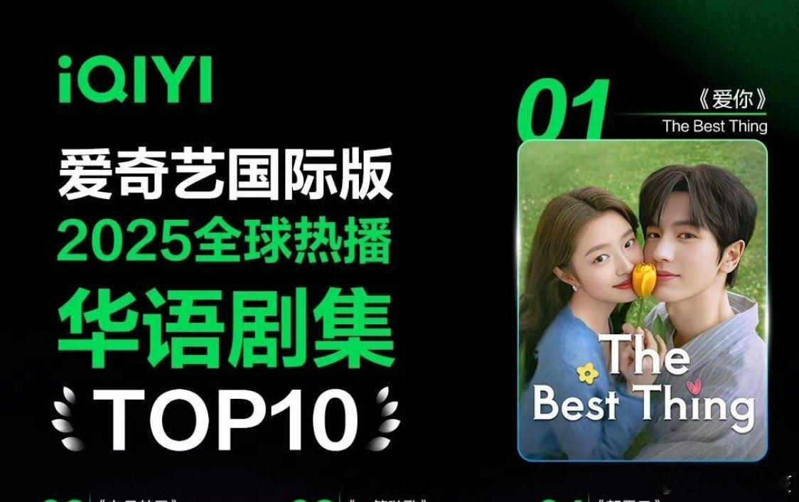 恭喜张凌赫《爱你》拿下25年🥝国际版全球热播华语剧集第一。这部剧已经是爱奇艺官