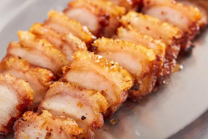 今日美食必须晒一晒!做了蒜蓉粉丝蒸虾球和零油炸脆皮五花肉。 蒜蓉粉丝蒸虾球,堪称秋冬补锌利器。鲜虾富含优质蛋白和锌,粉丝吸满酱汁软糯可口。做法简单,先把粉丝温水泡软绕成圈摆盘,鲜虾去壳去线,蒜蓉分两半,一半热油激香,一半最后放,调酱汁用轻盐酱油和蚝油,10分钟就上桌,挑食的娃都抢着吃。 零油炸脆皮五花肉,秋冬解馋必备。先煮逼油、再煎锁脆,少了约40%油脂。五花肉冷水下锅加葱姜料酒煮30分钟,捞出擦干,平底锅干煎,外皮嘎嘣脆,肉质嫩到拉丝,好吃不腻! 这两道美食不仅味道好,颜值还高。蒜蓉粉丝蒸虾球端上桌,那一个个饱满的虾球躺在粉丝上,蒜蓉的金黄点缀其中,仿佛是一件精美的艺术品。零油炸脆皮五花肉,那金黄酥脆的外皮泛着诱人的光泽,光是看着就让人垂涎欲滴。 吃的时候,夹起一个虾球,粉丝还带着些许弹性地挂在上面,一口下去,虾肉的鲜甜、蒜蓉的浓香、粉丝的软糯在口中交织,那滋味简直妙不可言。再咬上一口脆皮五花肉,“咔嚓”一声,外皮的酥脆和内里的鲜嫩瞬间在舌尖上炸开,满满的幸福感涌上心头。 今日有这两道美食相伴,真是太满足啦!宝子们也可以动手试试,相信你们一定会爱上它们!