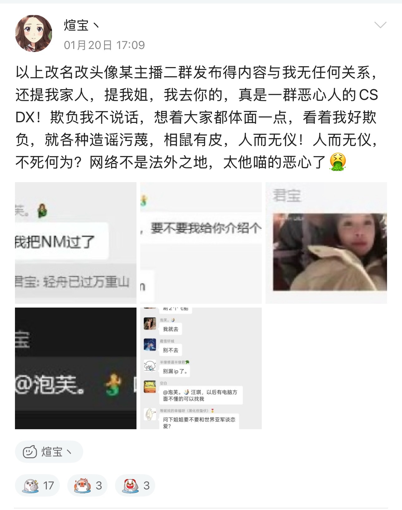 昨天孙正粉丝群有人把微信头像改成了煊宝,Xxn在那造谣聊天,煊宝直接开爆!讲道理这些cp粉确实魔怔了!dota2