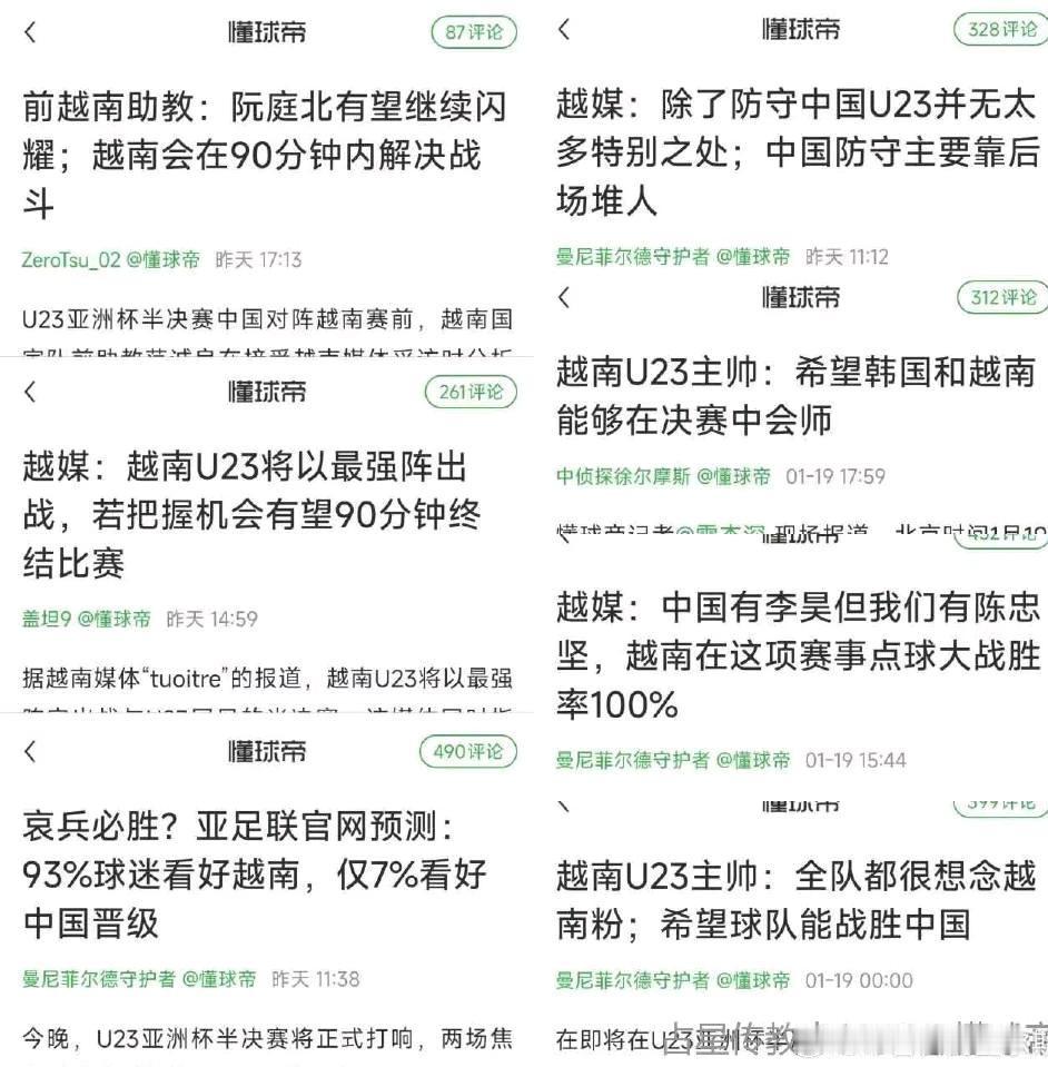 这次不是0-0,是3-0!U23亚洲杯,国足3-0大胜越南首次晋级决赛! 主帅安东尼奥牛掰,换了6名首发(中前场换了4个),最终3-0战胜越南,昂首晋级决赛,还看到了期待已久的传控。 高兴之余心情挺复杂,真正踢世界杯,咱们的国足还能这么晒脱吗?还会让我们不揪心吗?答案是…… 所以才会让这么一项不起眼的赛事上了热搜榜(图3),才有好事者收集越南方面的评论(图4)。