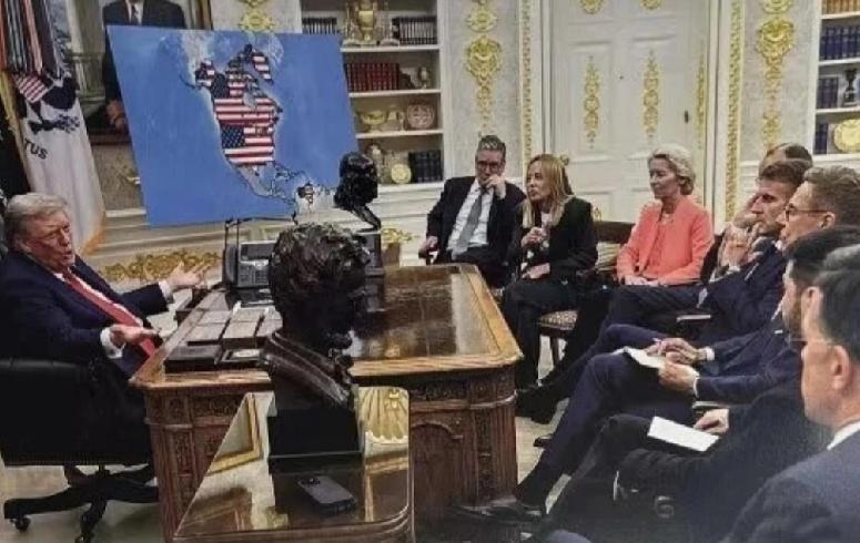 美国总统特朗普今日宣称,拿下格陵兰“绝不回头”,且不排除动用武力夺取。他在社交媒体上传AI生成图片,画面中他手持美国国旗登上格陵兰岛,身后站着美国副总统万斯和国务卿鲁比奥,旁边指示牌上写着“格陵兰岛2026年成为美国领土”。