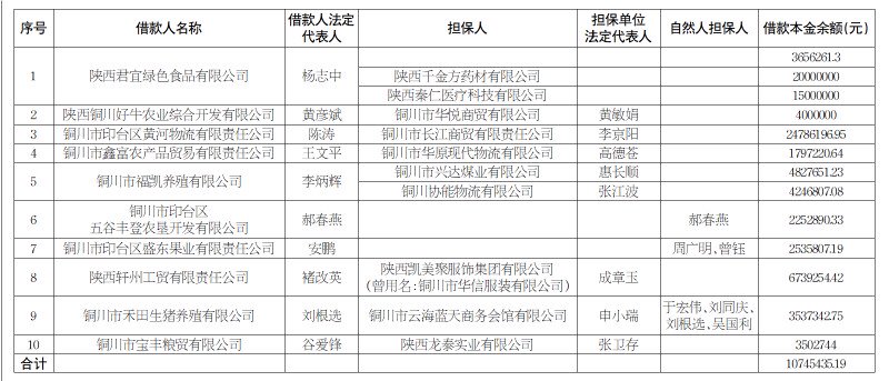 根据国家有关法律规定,司法解释和政策法规,对下列逾期债务予以公告,请借款人及担保人或相关承继人立即向中国农业发展银行铜川市印台区支行履行还款义务或承担担保责任。