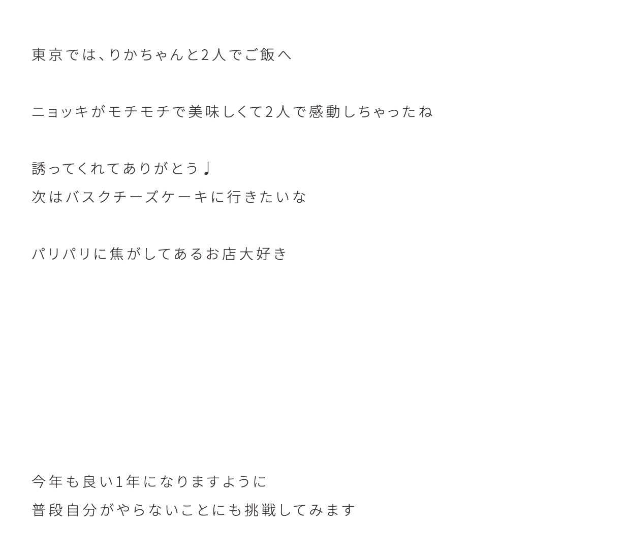 小田倉麗奈「今年は1月1日から徹夜をして、友だちと初日の出を見に行きました。空気が違う気がしてくるから不思議ですね。初日から楽しかったです。でも家に帰ってからは爆睡でした。今年も自由気ままに生きていけそうです。そういえば……この間はみんなで運動をしてきました。りかなぎあいりいとはゆうれいな、です。すごく楽しかったな〜〜みんなノリノリで遊び倒しました。筋肉痛も嬉しい痛みです。スポーツフェス活躍できるといいな。運動会が大好きだから全力出すね!」