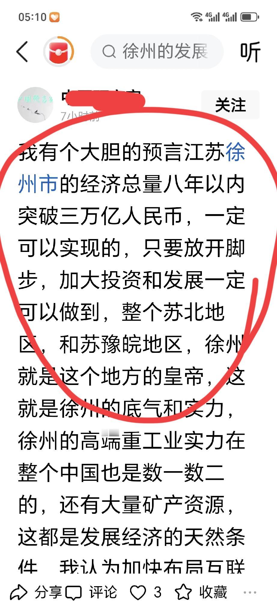 财经 城市 有一网友过度吹捧徐州了,他竟大胆预言江苏徐州的经济总量能在八年以内突