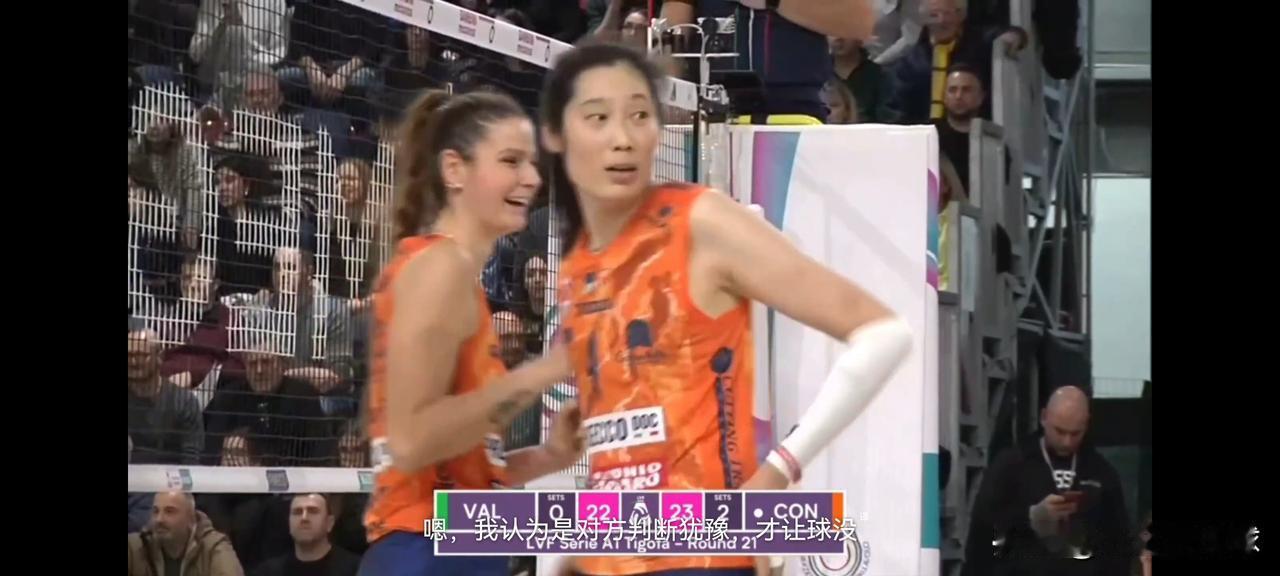 朱婷身披橙色战衣,助力科内双杀瓦莱福利亚。 原以为本场科内半主力作战,结果全主力