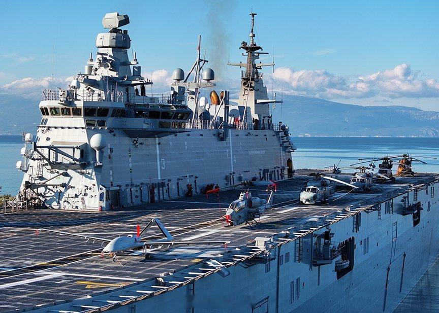 全球武器装备盘点每天认识一件兵器烽火问鼎计划 阿纳多卢号土耳其海军任务部队从伊兹密尔福恰出发,首站将前往西班牙。可以看到,“TCG阿纳多卢”号航母甲板上停放着TB - 3无人机、S - 70B“海鹰”直升机、AH - 1W“超级眼镜蛇”直升机和AS - 532“美洲狮”直升机。