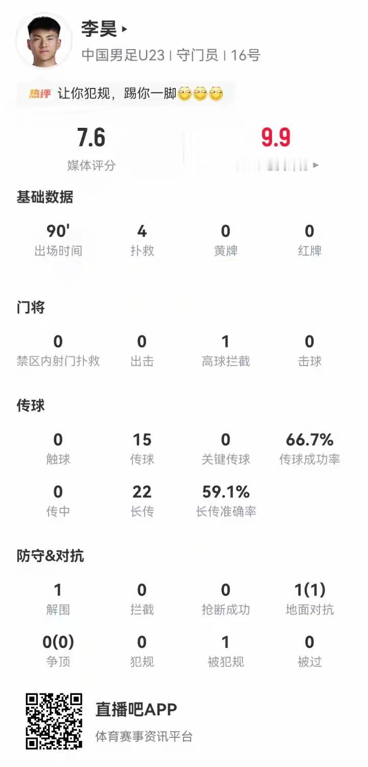 球迷都在为u23国足一场酣畅淋漓的大胜叫好,我却发现“大事不好”,球迷心中的战神李昊被人虚化边缘化了! 数据不会骗人,这场中越半决赛,李昊虽有4次扑救,却捞了诸多0指标,靠吼叫就把对手吓退了。[大笑] 开过玩笑说实话,进攻是最好的防守,这场比赛彭啸、向余望、王钰栋火力全开,越南队招架不住,当然便宜了李昊。我们的门神,有资格在后场遥望前方碾压级战斗中仰天大笑。