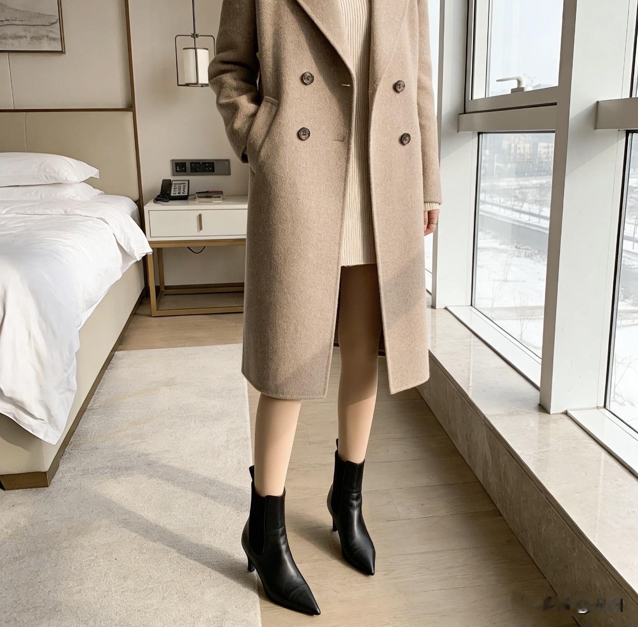 vlog打卡每日穿搭米奇色风衣内搭连身短裙下身光腿神器搭高跟短靴的魅力时尚穿搭