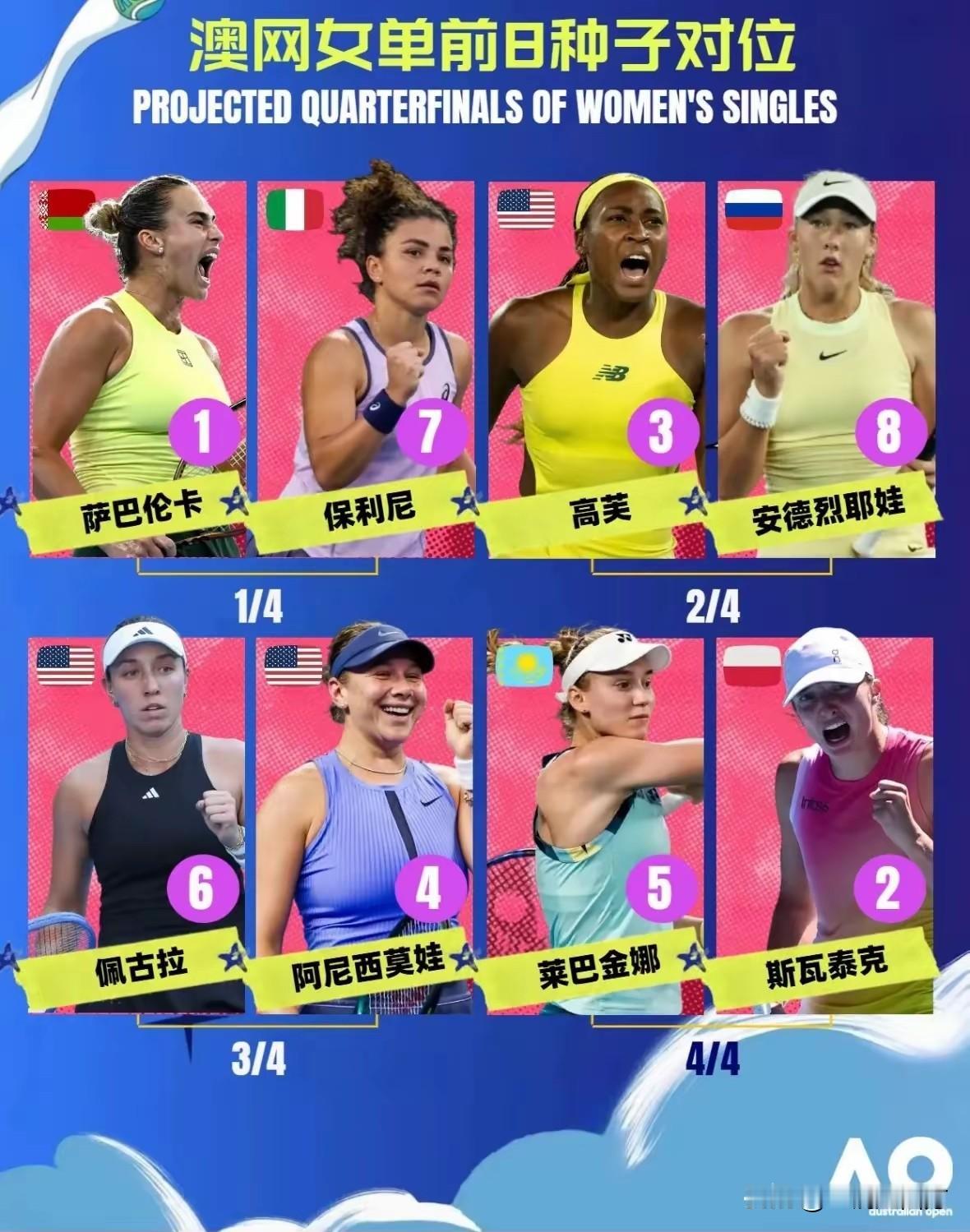 经过三个比赛日的争夺,澳网单打正赛首轮全部结束,男女单打64强全部产生,男单有7