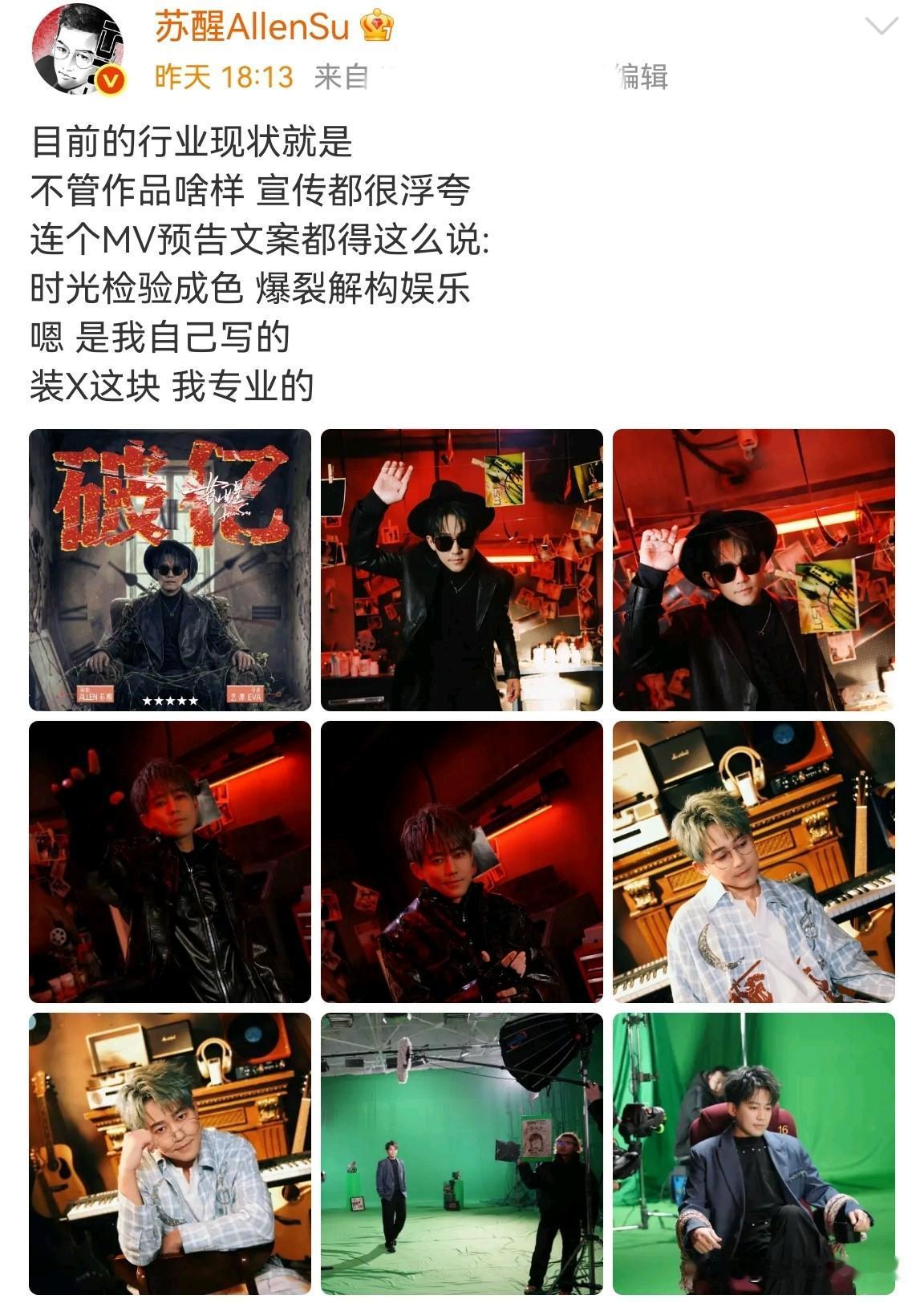 1月20日,苏醒正式官宣《破亿》MV即将上映。醒哥发了9张图片,他一共换了3张妆