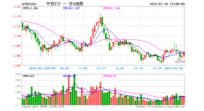 1月20日中药ETF(560080)份额减少1050.00万份,最新份额22.94亿份,最新规模24.47亿元