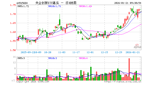 1月21日,央企创新ETF嘉实(515680)开盘跌0.06%,报1.724元。央企创新ETF嘉实(515680)重仓股方面,中国船舶开盘跌0.17%,海康威视涨2.86%,国电南瑞跌0.38%,长安汽车跌0.17%,宝钢股份跌0.41%,中国铝业跌0.68%,中国中车涨0.00%,中国联通跌0.19%,中国建筑涨0.00%,长江电力涨0.04%。