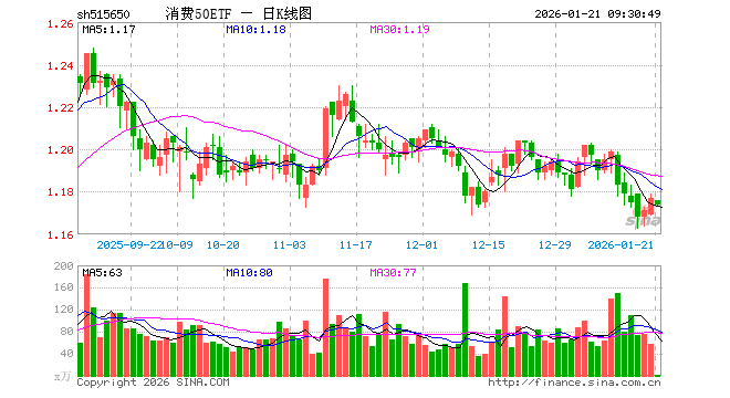 1月21日,消费50ETF(515650)开盘跌0.08%,报1.176元。消费50ETF(515650)重仓股方面,贵州茅台开盘涨0.00%,美的集团跌0.05%,五粮液跌0.28%,格力电器涨0.05%,伊利股份涨0.26%,牧原股份涨0.09%,三花智控跌1.40%,温氏股份涨0.25%,海尔智家跌0.19%,山西汾酒涨0.01%。
