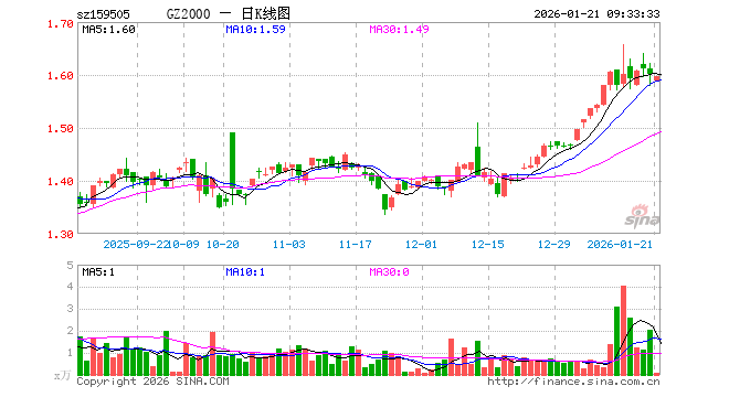 1月21日,国证2000指数ETF(159505)开盘跌0.75%,报1.589元。国证2000指数ETF(159505)重仓股方面,上海洗霸开盘跌2.28%,剑桥科技跌0.28%,东方钽业跌0.48%,派能科技跌0.71%,皖维高新跌0.73%,绿盟科技跌0.76%,普天科技跌1.28%,银龙股份跌1.13%,联赢激光跌0.17%,精工科技跌0.87%。