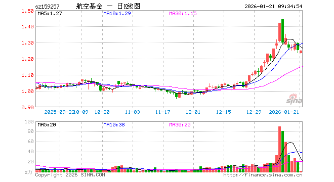 1月21日,航空ETF基金(159257)开盘跌1.52%,报1.232元。航空ETF基金(159257)重仓股方面,万丰奥威开盘跌0.86%,洪都航空跌0.12%,航天彩虹跌0.97%,中直股份跌0.29%,珠海冠宇跌0.73%,华力创通跌0.34%,应流股份跌0.94%,南网科技跌0.90%,睿创微纳跌0.75%,中国卫星涨0.01%。