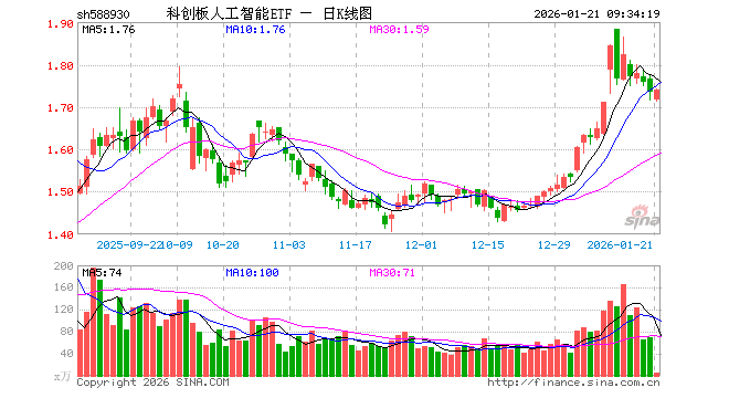 1月21日,科创板人工智能ETF(588930)开盘跌1.10%,报1.716元。科创板人工智能ETF(588930)重仓股方面,澜起科技开盘涨0.70%,芯原股份跌1.22%,寒武纪跌0.57%,金山办公跌0.30%,石头科技跌0.31%,晶晨股份跌0.93%,恒玄科技跌0.43%,云天励飞跌0.98%,复旦微电跌0.66%,乐鑫科技跌1.05%。