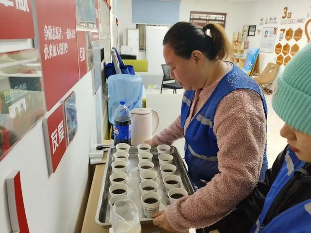 △在永丰街道仙湖社区“阳小驿”,工作人员为新就业群体送上暖姜茶。