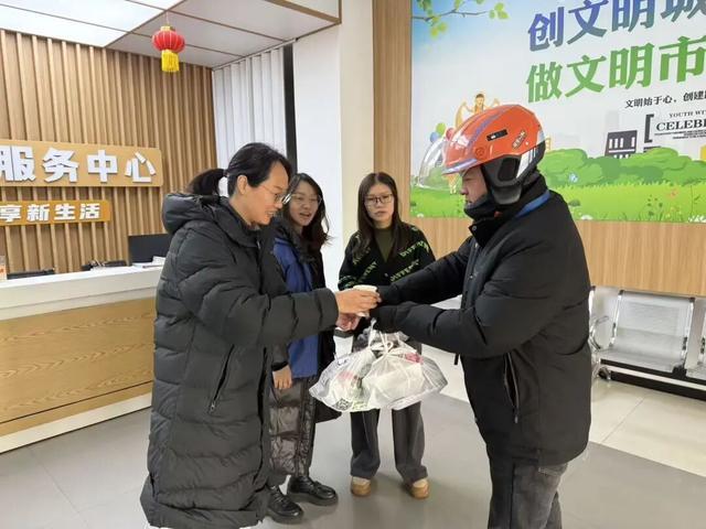 暖心的互助是双向的。在建桥街道西大街社区,外卖小哥赵承军将夏季爱心送水点升级为冬季暖心驿站,为环卫工人、快递员递上热姜茶。与此同时,他还与志愿小分队,走访辖区空巢独居老人家庭,送去米面粮油等生活必需品,用实际行动传递社区温暖。