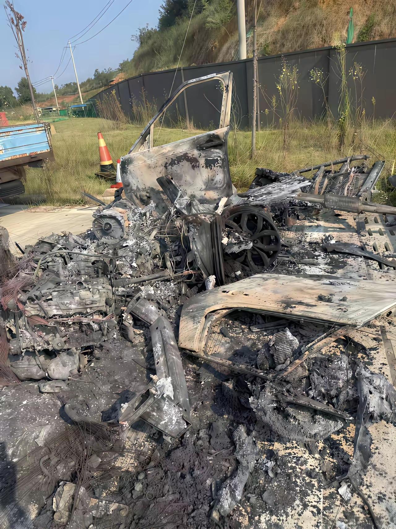 我敢打赌!车子烧成这样,还能通过废渣把这车认出来的人,绝对是大神。 说说看,这是什么车?[what]