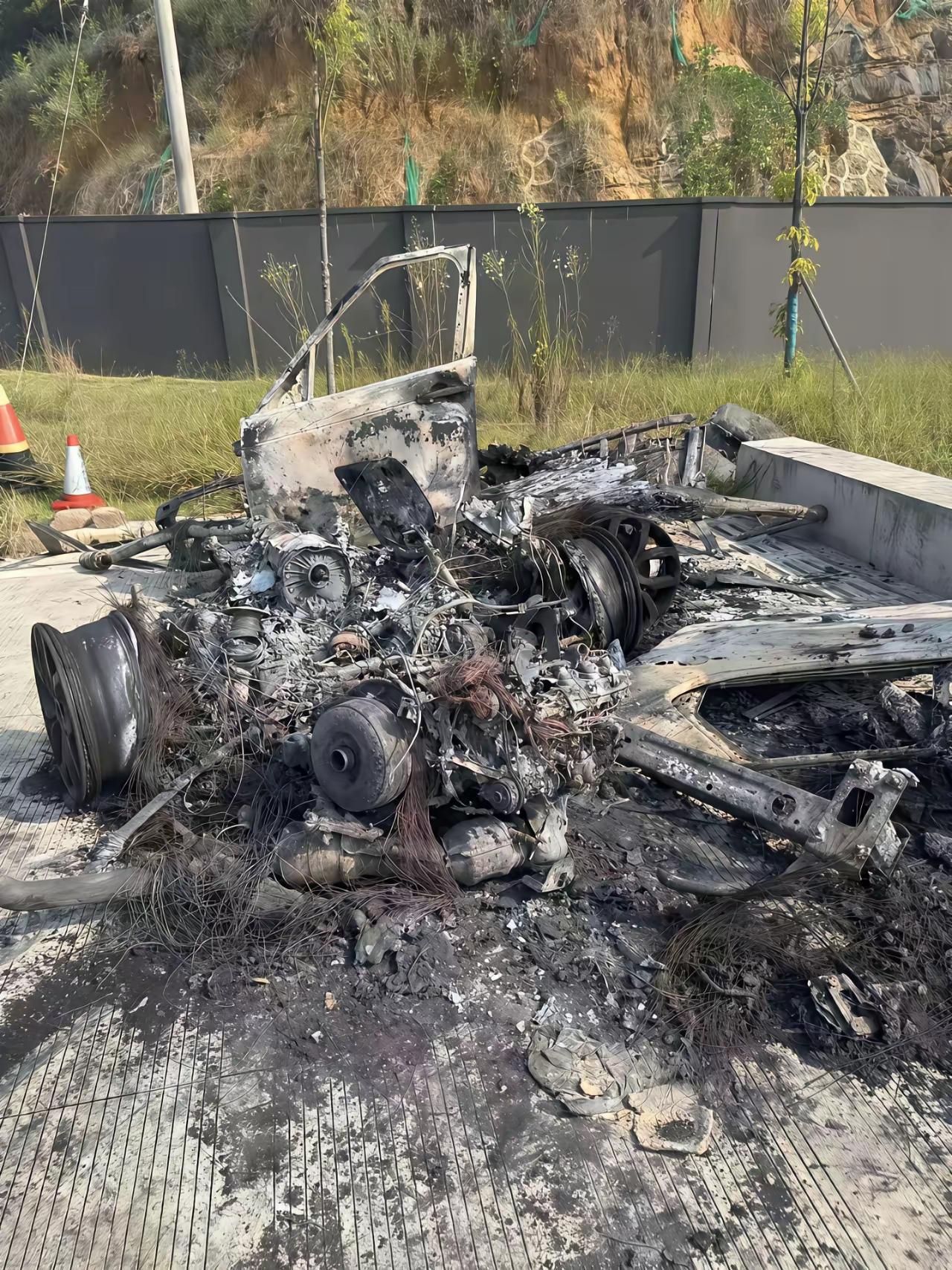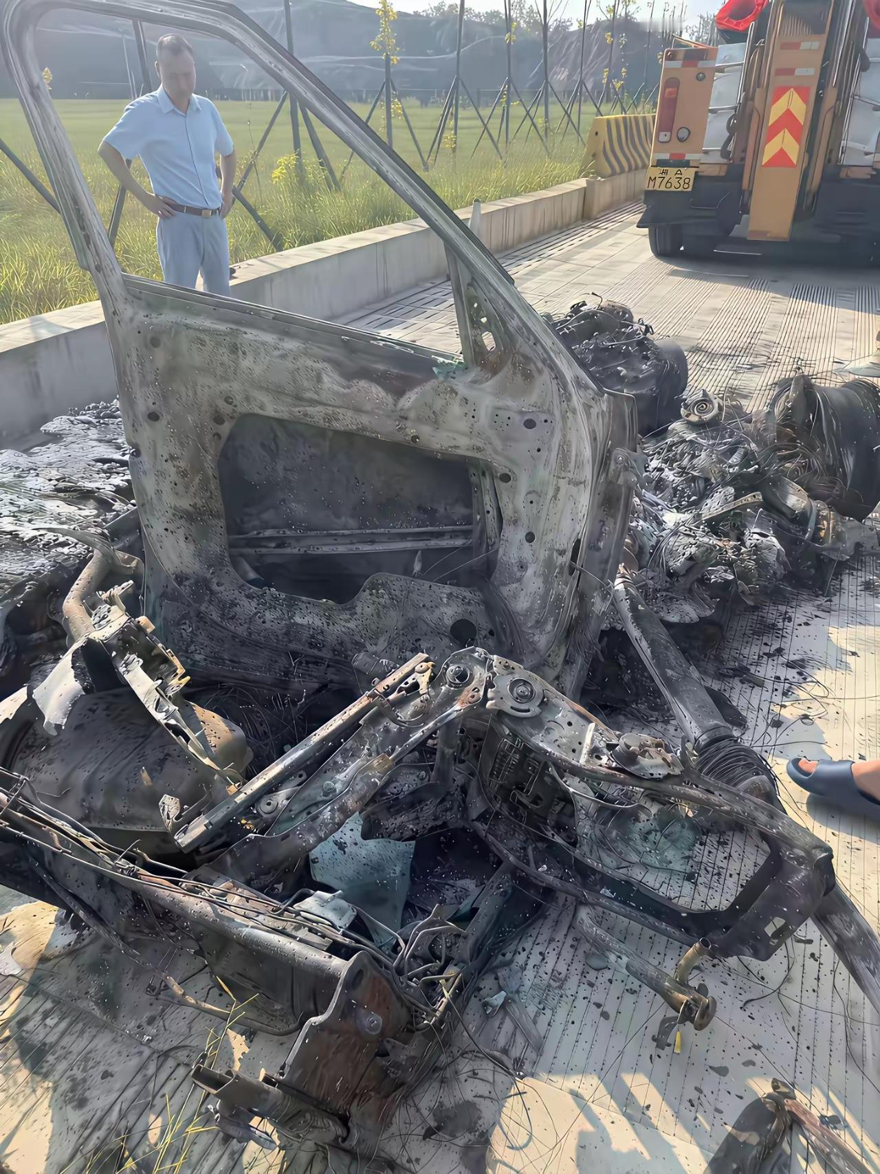 我敢打赌!车子烧成这样,还能通过废渣把这车认出来的人,绝对是大神。 说说看,这是