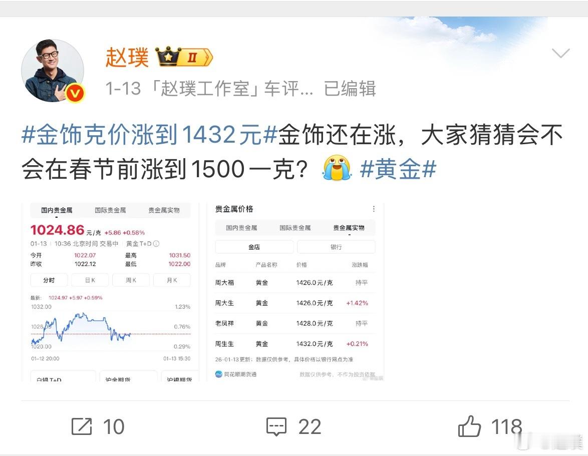 金饰价涨到1495元 上个星期还在讨论金饰会不会在春节前突破每克1500元,没想