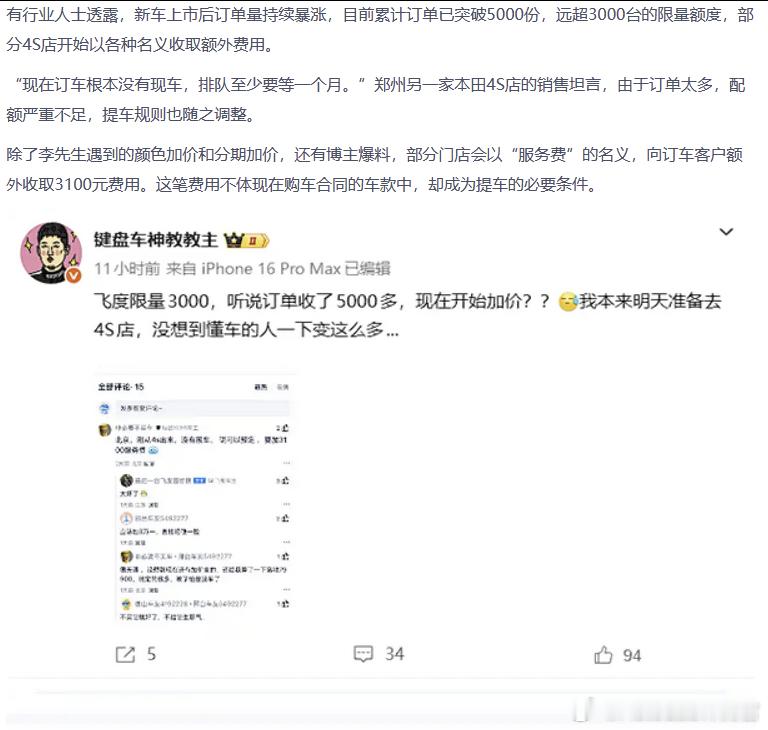 本田飞度:“3000辆,你们以为我卖不出去,但其实我订单已经突破5000辆了!”