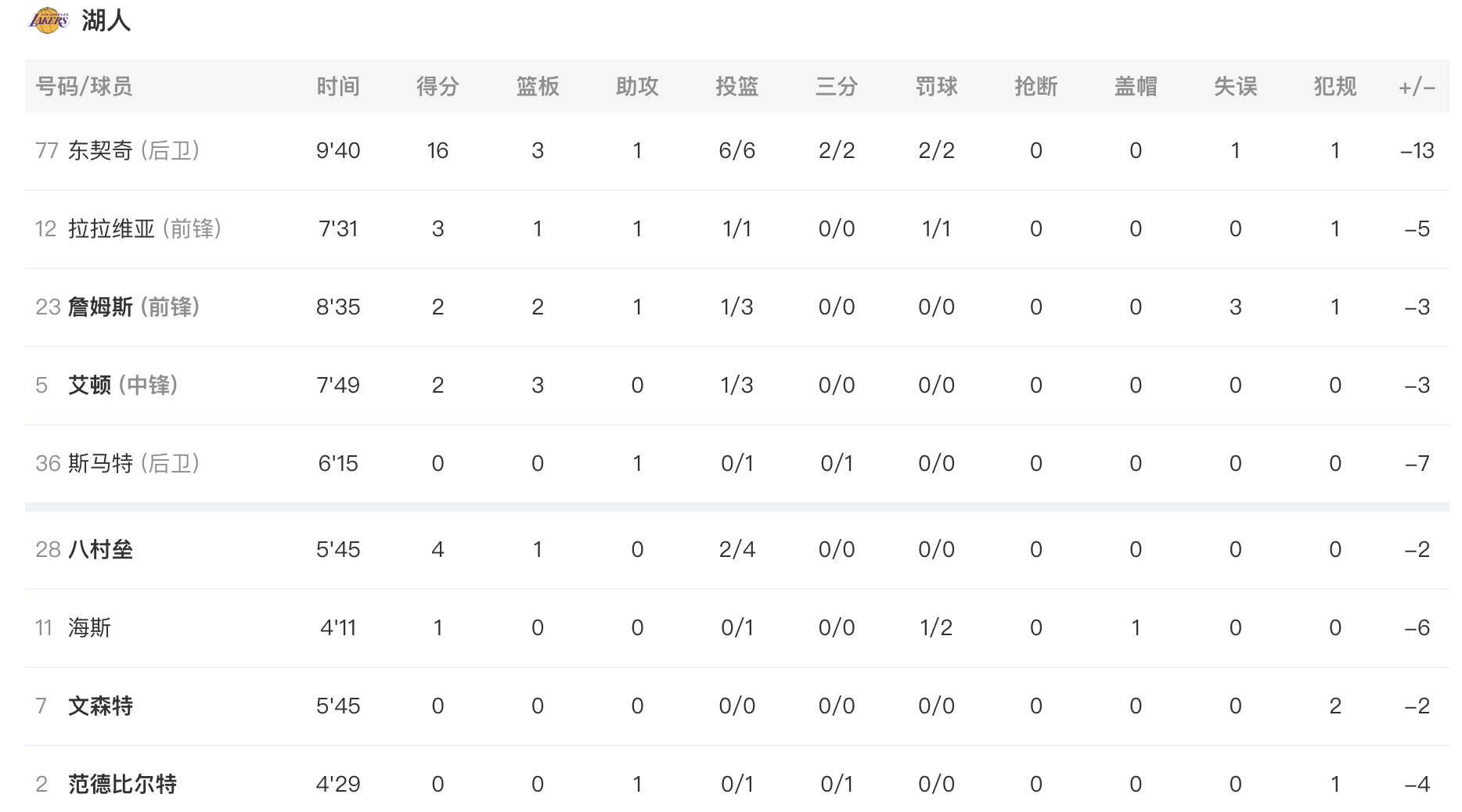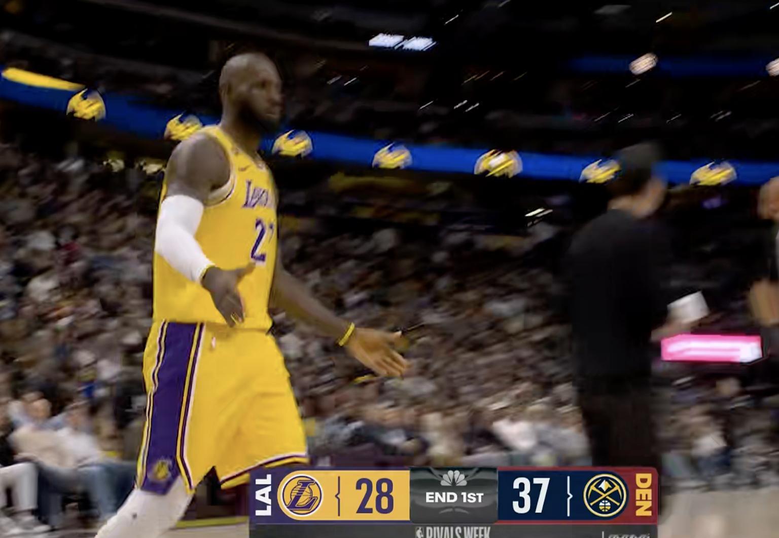 詹姆斯压哨!第一节结束,湖人28-37掘金,如何评价首节表现?湖人vs掘金 詹姆斯2分2篮板1助攻,东契奇16分3篮板1助攻,拉拉维亚3分1篮板1助攻,艾顿2分3篮板,八村4分1篮板,海斯1分1盖帽。