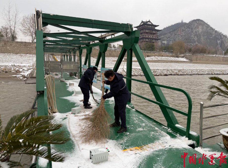 彭泽处闻“寒”而动,对趸船、航标船进行归位加固,转移物资避风,并对管路系统、接岸水管等关键设备进行防冻包扎,备足应急物资。寒潮来袭后,迅速启动应急响应,组织职工清扫甲板和引桥积雪,在易结冰路段预撒融雪盐;同时在人员活动高频区域全覆盖铺设并固定防滑垫,从“除雪”到“防滑”形成安全闭环。