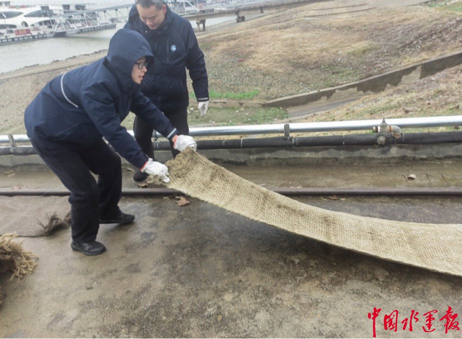 湖口处迅速落实防风、防滑、防寒措施。通过工作群及时传递预警信息与安全提醒,每日坚持活舵活车,进行精细化排查养护。职工们在钢引桥、趸船等关键通道铺设防滑棕垫,并仔细检查、修补水管防冻棉,确保防滑防冻措施覆盖到每一步台阶、每一段管路。同时,加固系泊设施,实施钢丝绳“双保险”捆扎,有效抵御风浪,保障船艇驻泊安全。