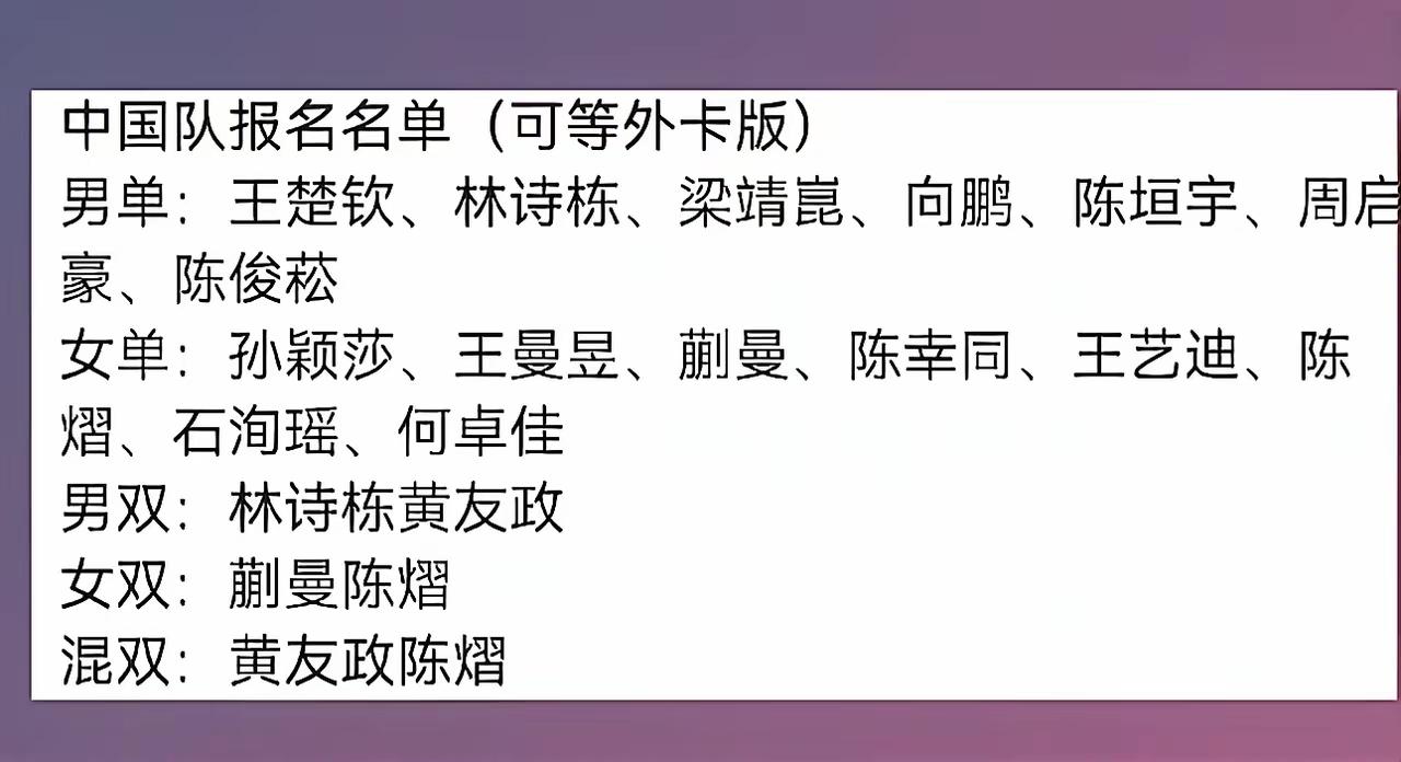 陈熠扛下了所有! 新加坡大满贯陈熠报了三项,是国乒女队兼项最多的球员,因此有网友称,新加坡大满贯陈熠扛下了所有。 还有网友称,不是陈熠表现异常突出,也不是她关系硬,而是在她20岁这个年龄,很有冲劲的时候,给她一个淬炼成金的机会,希望她珍惜这样难得而宝贵的机会,一冲成名。 更有网友称,除了单打凭自己发挥之外,女双给她配已经成名的蒯曼,混双给她配颇有实力的小将黄友政,国乒将资源如此倾斜给陈熠,是想让她绝地反击,是机遇,也是挑战;是动力,也是压力。希望陈熠不负众望,在新加坡大满贯杀出一条血路,淬炼成金。 小将陈熠,加油向前冲吧!