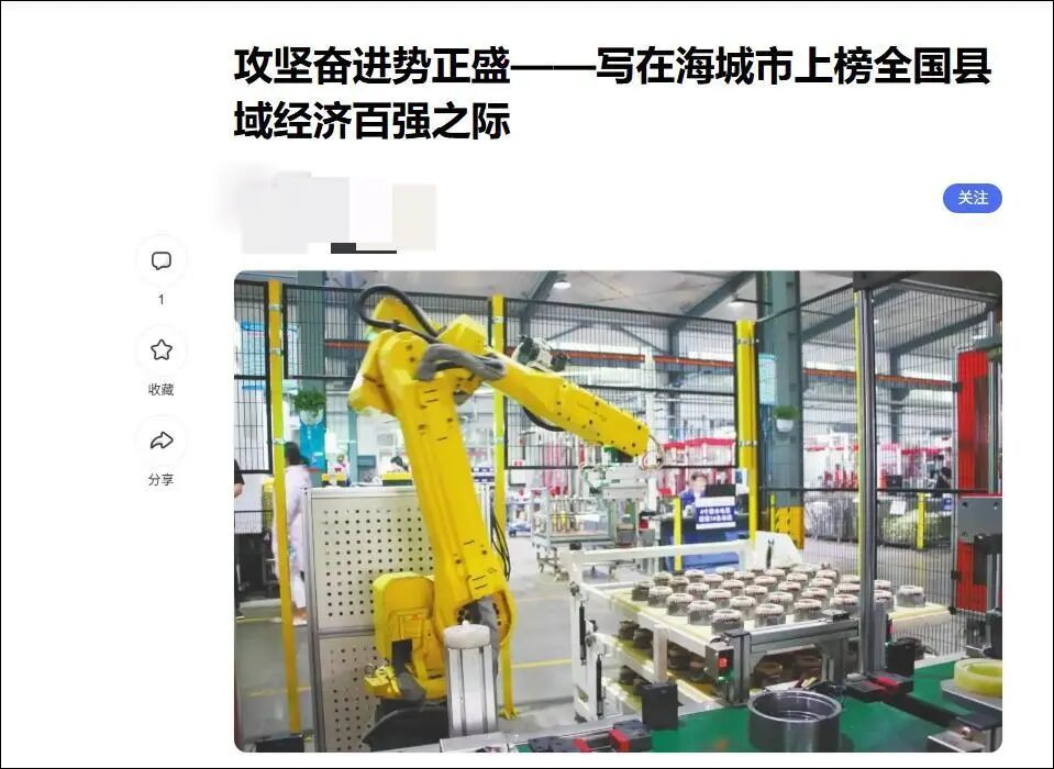 公开信息显示,海城是鞍山代管的县级市。相关报道提到,2025年7月23日,2025县域经济创新发展论坛在北京举行。《2025中国县域经济高质量发展研究》报告及2025全国县域经济百强榜单,正式发布。辽宁省海城市跻身中国县域经济百强县行列,位列第91位,实现了在全国县域发展中的争先进位。这一“成绩”还写进了海城市2025年政府工作报告。而发布这一榜单的机构为“赛迪顾问”。
