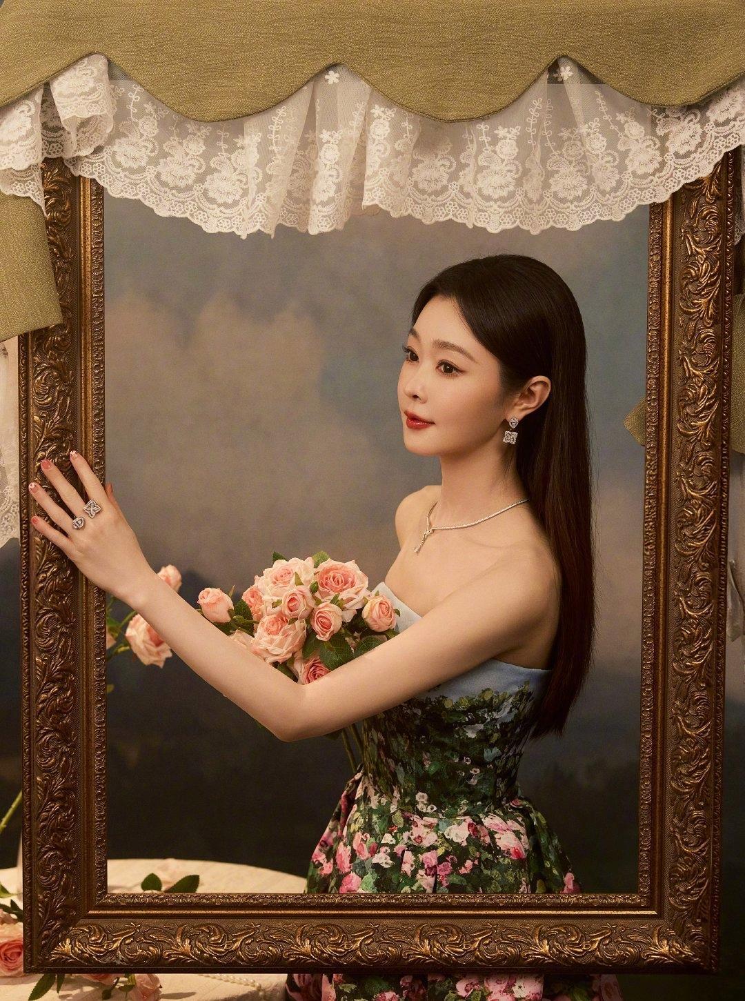 佟丽娅的粉裙造型杀疯了!浅粉纱裙+飘逸披风,优雅大气又仙气,这才是氛围感美人的正