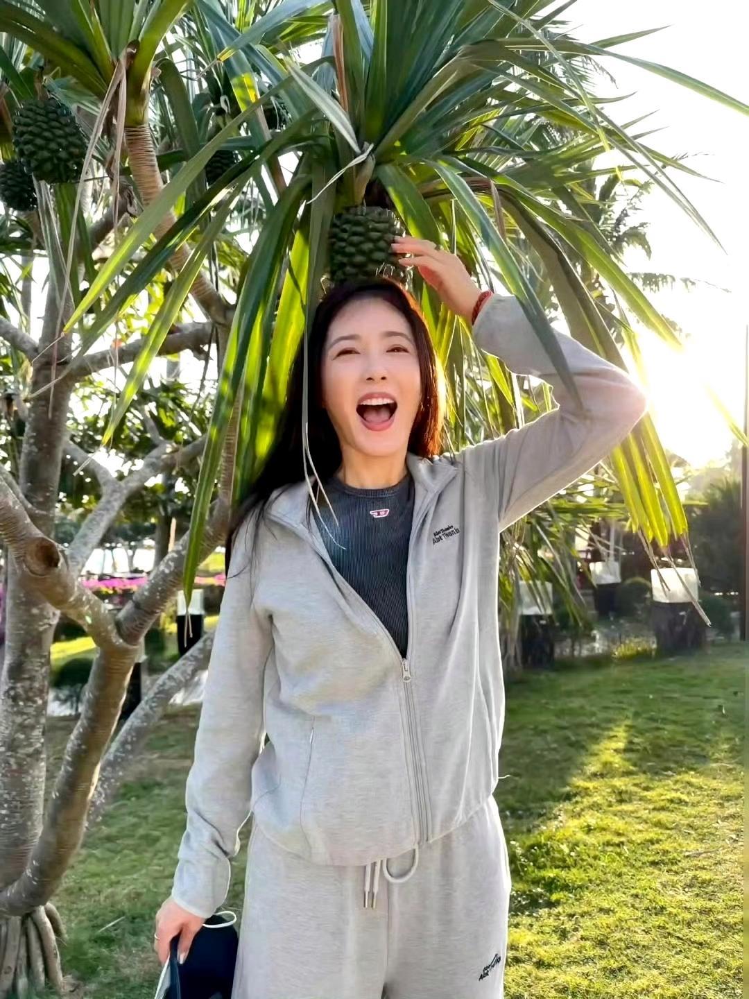 当落日余晖穿过棕榈叶,曾黎用一组随性随拍,把“冻龄女神”的氛围感拉满。 🌿 灰色运动套装,是不费力的时髦 她身着一套浅灰色运动套装,宽松剪裁搭配简约内搭,既舒适又藏着小心思。没有华丽的裙摆,也没有精致的配饰,仅用一身松弛的穿搭,就把“自然美”诠释得淋漓尽致,仿佛在告诉我们:好状态,从来都不需要刻意堆砌。