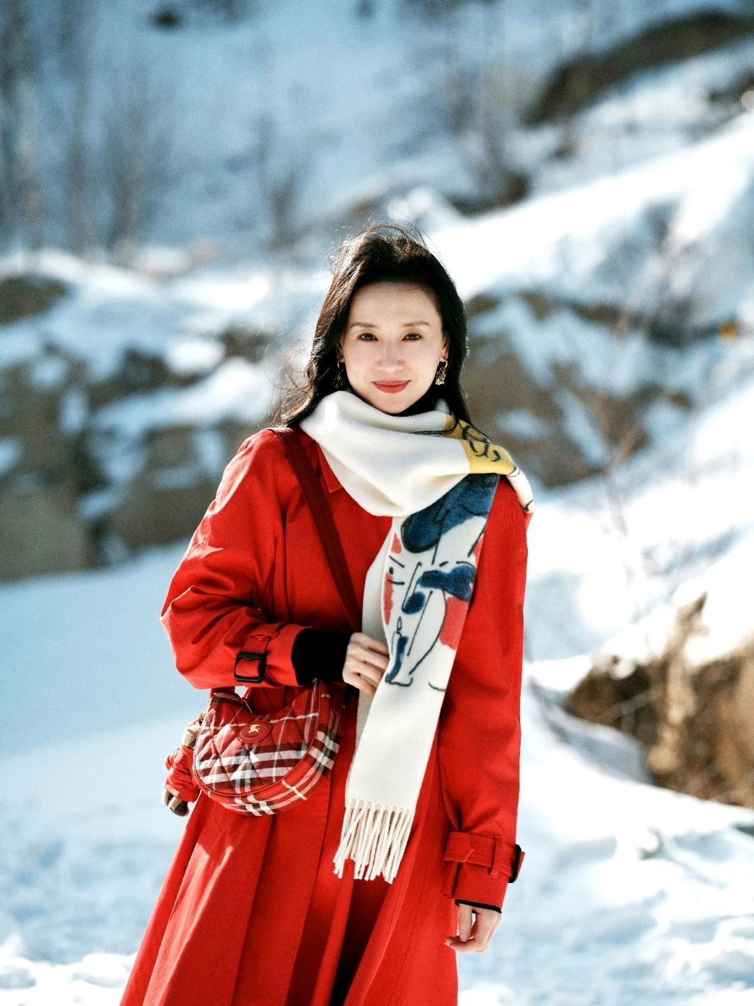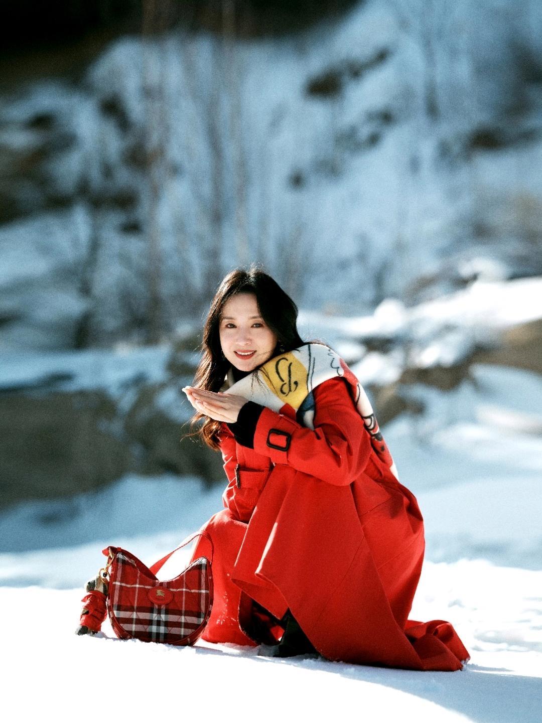 当皑皑白雪遇上热烈红裙,董洁用一组冬日随拍,把清冷的冬天拍出了温暖的氛围感。