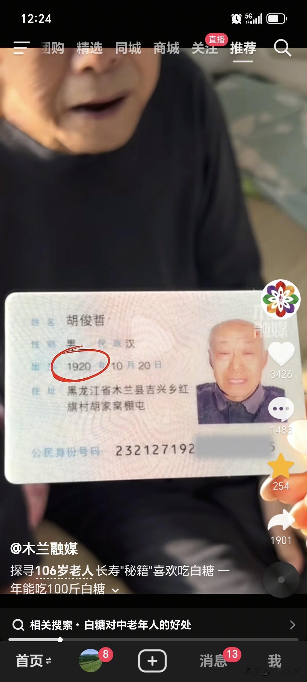 在强大的基因面前,一些所谓的养生方法,都失效了!近日,黑龙江,一位106岁老爷爷上了热搜,并分享了“坏习惯”:喜欢吃甜的,所以粥里面放白糖,喝水放白糖,闲着无事,嘴里面放两勺子白糖,家人总结:一年保守估计100斤左右。按照《中国居民膳食指南》建议,成人每天添加糖的摄入量应不超过50克,最好控制在25克以下,老爷爷一天135克,超了很多倍,依然健康长寿呀。另外一点,老爷爷心态很好,为什么这么说呢?因为儿媳妇64岁了,每天都亲自给他打水洗脚,换作一般人来说,肯定会怕尴尬,然后拒绝,而老爷爷很享受,接受这份孝心。全面分析,家庭氛围很不错呀。写在最后,祝福老爷爷活到120岁,因为存在个体差异,请不要随意模仿去吃白糖呀[笑哭]。