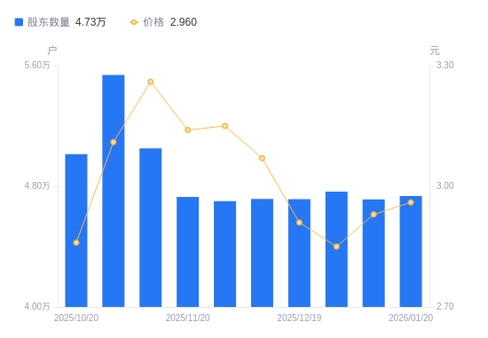 日期A股户数(户)流通A股户均持股数(股)户均持股市值(万元)2026-01-204734628265.908.372026-01-094713828390.628.322025-12-314765028085.578.002025-12-194714928384.008.262025-12-104716028377.388.712025-11-284702228460.668.972025-11-204728928299.978.892025-11-105051826491.108.642025-10-315538624162.747.512025-10-205013426694.017.63